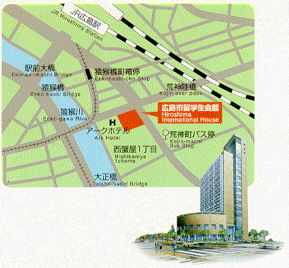 バス…「荒神町」バス停から西へ徒歩2分(広島電鉄、広島バス、JRバス、芸陽バス)