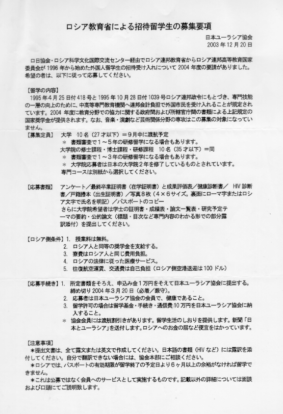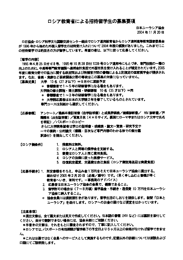 - 日本ユーラシア協会広島支部の会員同士の迅速活発な情報交換を行うためにメーリングリストを開設しました。先日、ガジエフ監督が来られたときも数日前に急遽連絡があり会員全員に広く知らせることができませんでした。これからはメーリングリストを有効に使って有効な情報をよりタイムリーにキャッチしましょう。